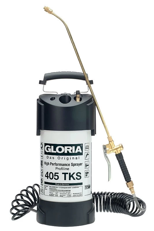 De krachtige Gloria sproeier 405 TKS Profiline beschikt over een drukreservoir van staal met hoogwaardige kunststof binnencoating die 5 liter sproeimiddel kan opnemen. Met spiraalslang en geïntegreerde compressoraansluiting. Krachtige sproeier voor speciale toepassingen.