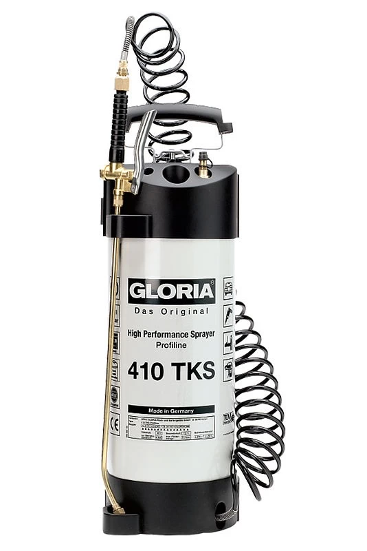 De Gloria krachtige sproeier 410 TKS beschikt over een drukreservoir van staal met hoogwaardige kunststof binnencoating, die 10 liter sproeimiddel kan opnemen en voor een bedrijfsdruk van max. 6 bar geschikt is. Dankzij speciale pakkingen is hij uitstekend geschikt voor het verdelen van oliehoudende vloeistoffen. Het model is uitgerust met een spiraalslang en een compressoraansluiting. Daarmee biedt het een grote bewegingsvrijheid en extra comfort. Het TÜV- en GS-zegel is een blijk van kwaliteit en veiligheid van de krachtige sproeier.