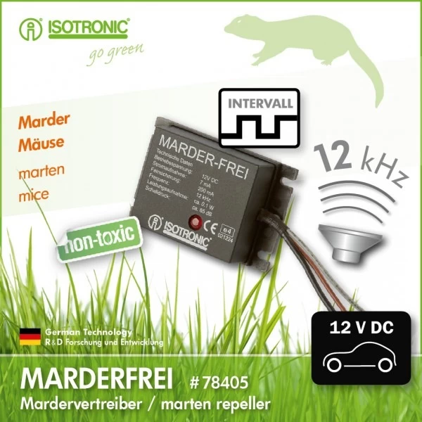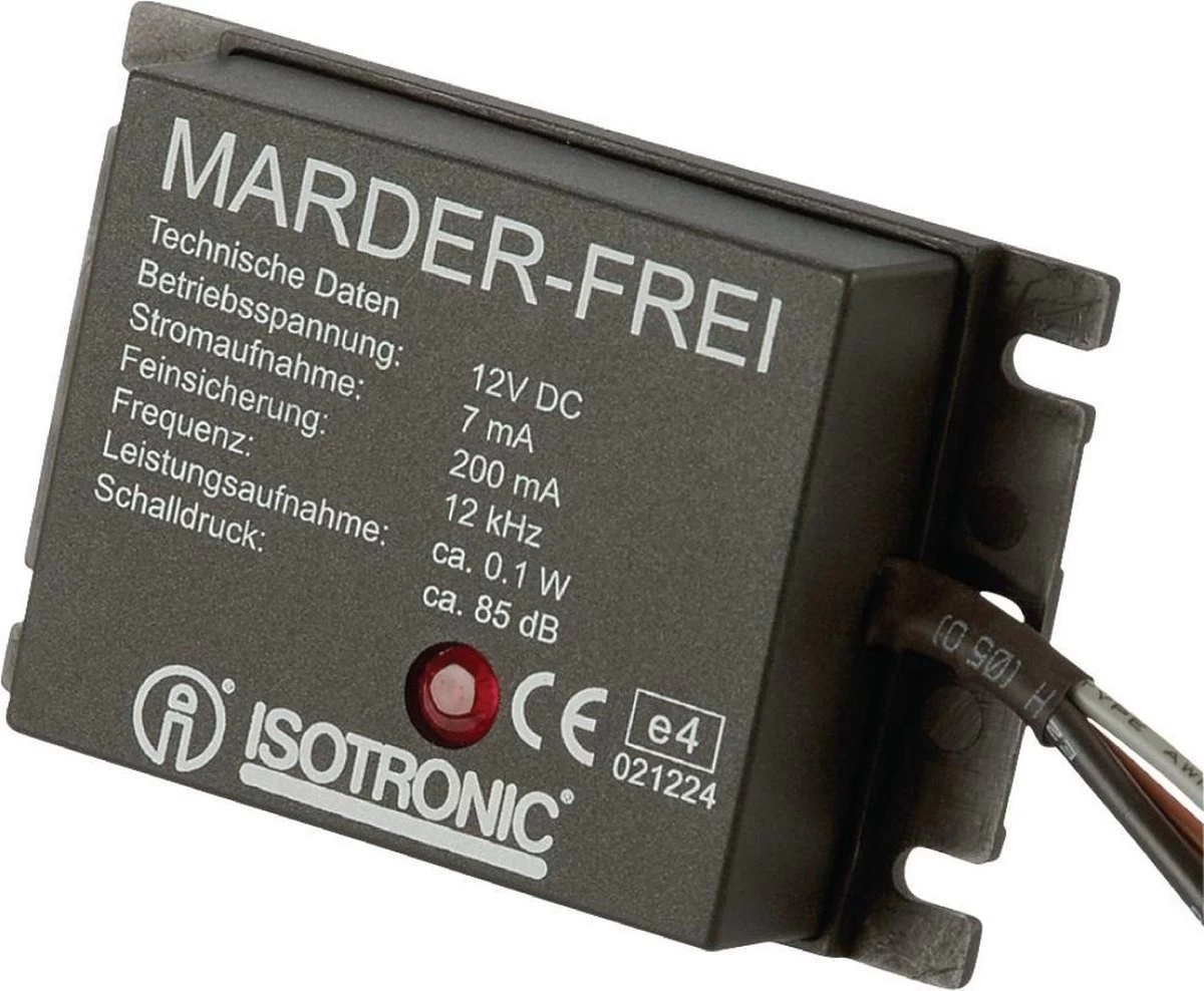 Het apparaat zendt een ultrahoge frequentie om marters weg te houden van voertuigen, zoals auto`s, vrachtwagens en caravans. Door middel van krachtige ultrahoge geluidstonen om de 15 seconden worden marters afgeschrikt. Het apparaat is eenvoudig te installeren in de motorruimte. Verbruikt minder energie dan een LCD-klok en de meegeleverde kabelbinders en schroeven zorgen ervoor dat het makkelijk gemonteerd kan worden.
