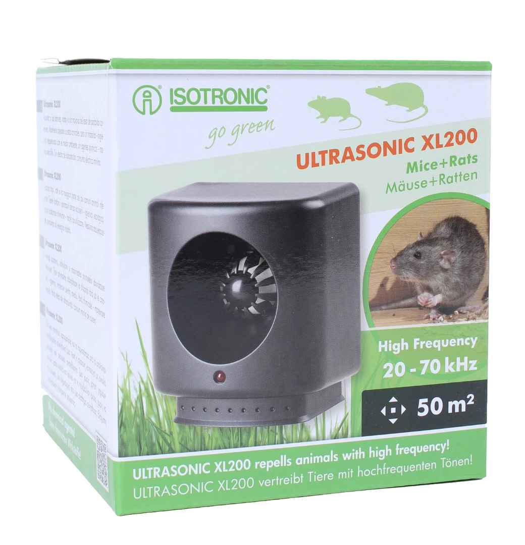 Isotronic muizen- en rattenverjager met ultrasonisch geluid (20.000-70.000 mHz) Handig apparaat dat eenvoudig is te plaatsen in huis, schuur of in de bijkeuken.